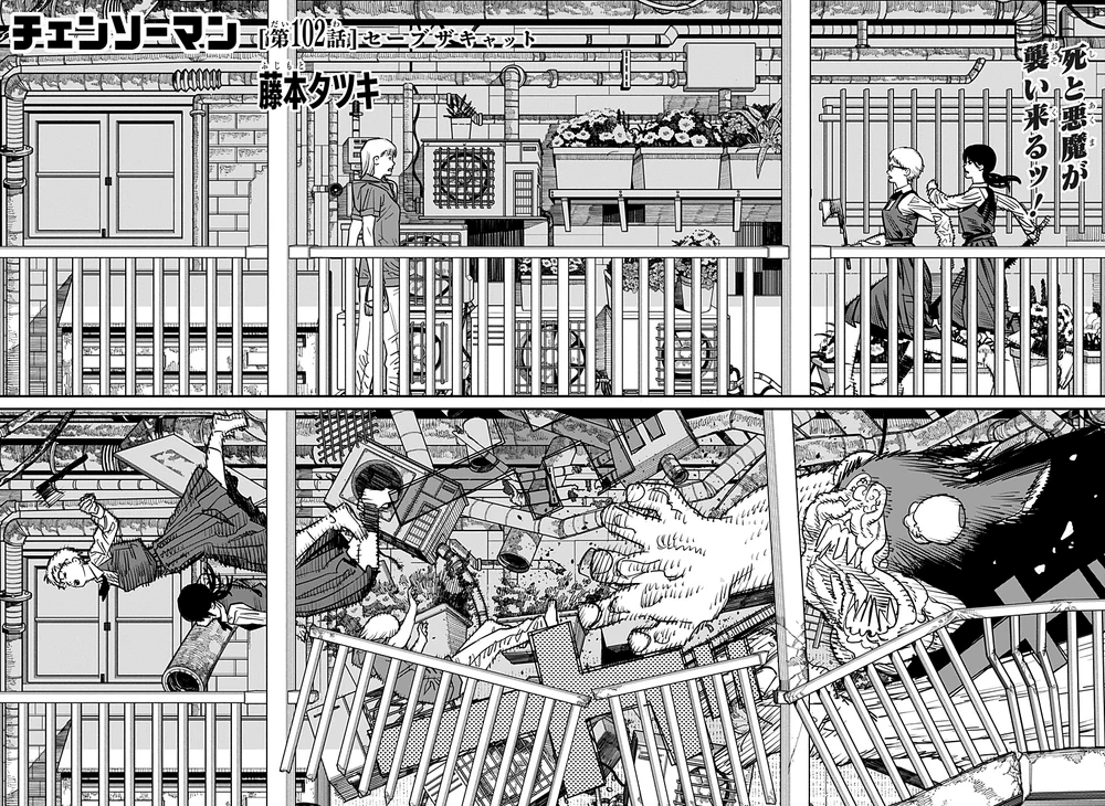 Salva al gato (セーブ ザ キャット, Sēbu za kyatto) es el centésimo segundo capítulo del manga Chainsaw Man y el quinto capitulo de la Parte 2.