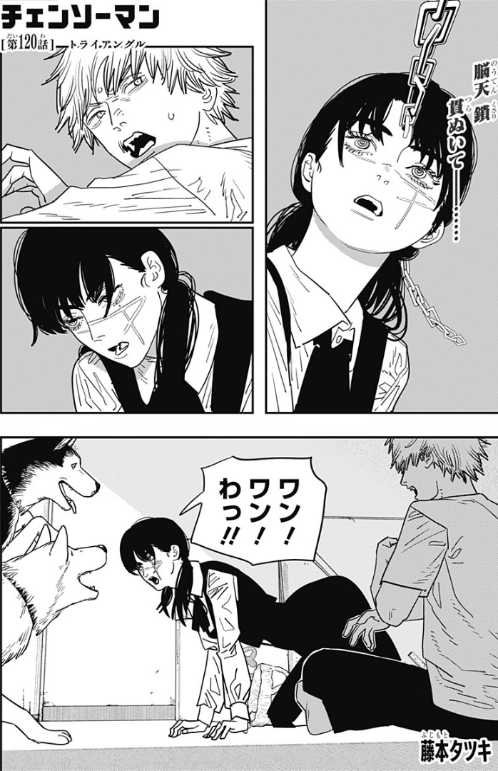 Triángulo (トライアングル, Toraianguru) es el centésimo vigésimo capítulo del manga Chainsaw Man y el vigésimo tercer capítulo de la Parte 2.