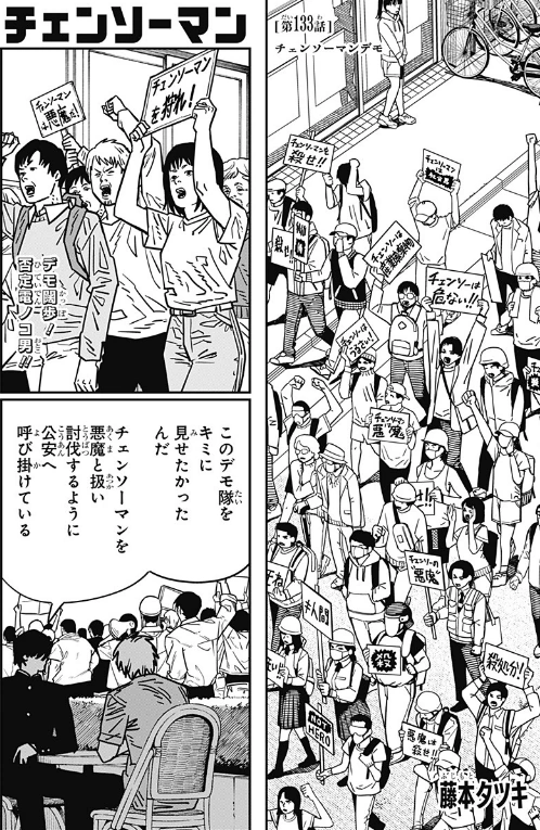 Manifestación por Chainsaw Man (チェンソーマンデモ, Chensōmandemo) es el centésimo trigésimo tercer capítulo del manga Chainsaw Man y el trigésimo sexto capítulo de la Parte 2.