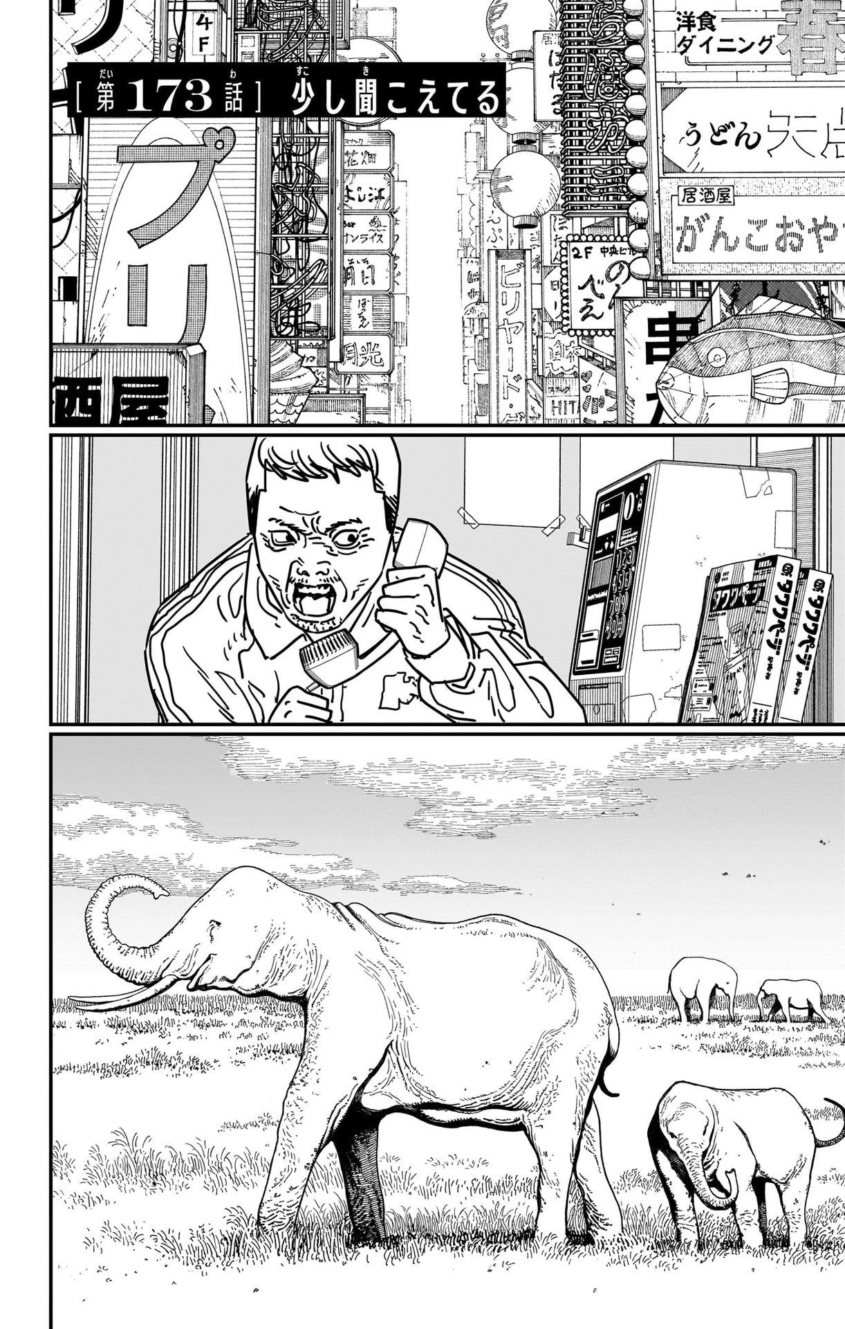 Three Public Safety members are then shown standing in a restroom; each of them cutting off a fingertip each. Uttering out "cervical spine," "neck" and "vertebrae," they use their fingertip to paint the word "hit" on the restroom mirrors. A Devil in Hell is then shown reading the message. Sighing, they lift their fist near a projected mirror. Pochita, now attempting to consume the next Devil head, is interrupted by a giant fist striking them. This attack doesn't go unpunished, however, as he quickly slices off two of the Devil's fingers. He is, however, interrupted by Yoshida, who summons the Octopus Devil to restrain him. The Devil comments that the human is doing a good job, before constricting Pochita enough to force him to spit out the Ear Devil's head; restoring everyone's ears in the process.